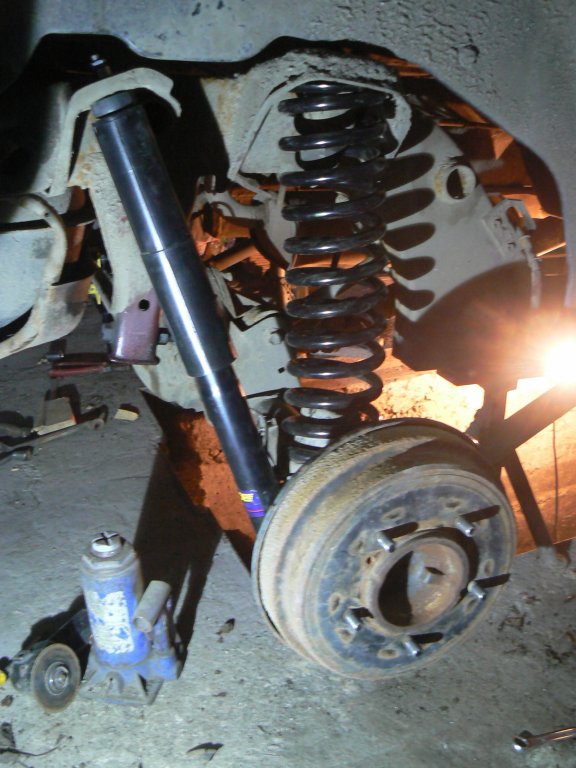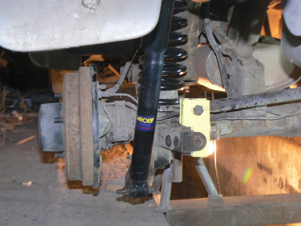 Стартирахме със задния мост,че уж по-лесно.Значи задните амортисьори са на Монро -маслени.Взех такива,защото знаех че пружините които съм взел за отзад(ПРЕДНИ пружини за Мерцедес 124), за доста твърди и возията ще е много хард.Надявах се,че маслените амове ще пооправят нещата,но уви.После се оказа че положението е трагично.