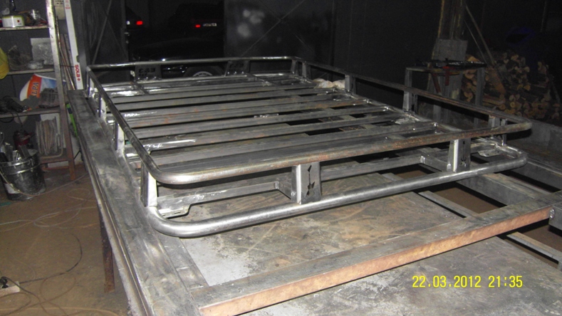 След първите няколко излети на палатка установих че багажа все по-трудно се събираше и трудно се подреждаше въпреки че е джипа е товарен (има само две седалки). Ще ви спестя снимките на "катуна" в багажното. За да се подобри положението трябва да си направя багажник за покрива и система чекмеджета вътре в джипа достатъчно ниски че да може да се спи върху им (за тях в друга тема) .