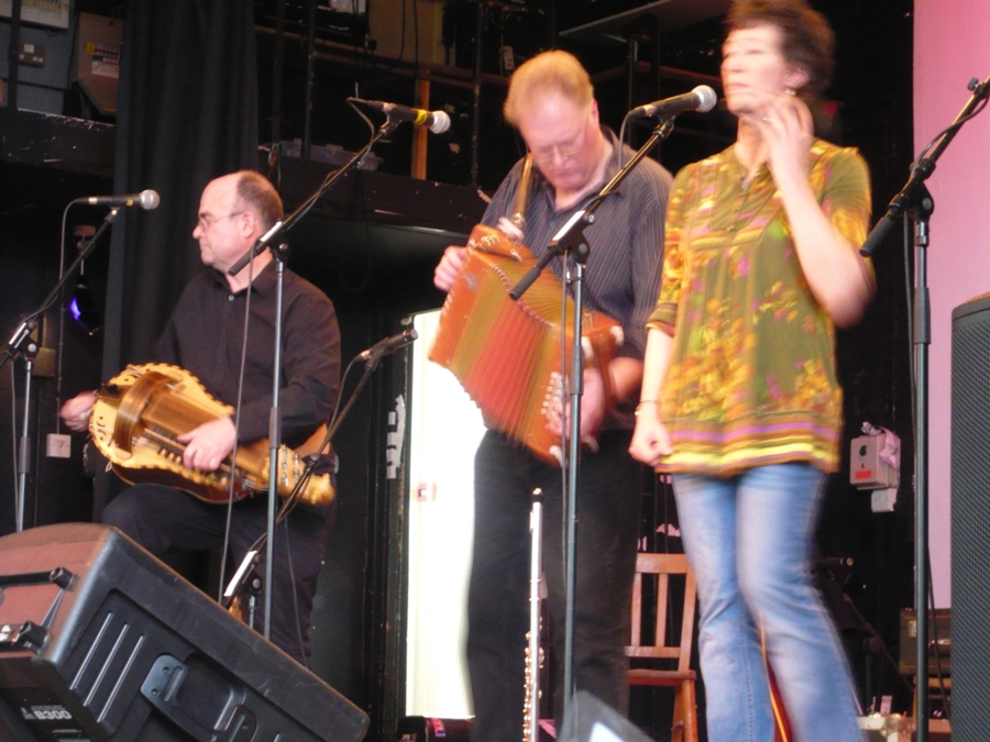 Чухме музика и надникнахме в някакъв безплатен фолк концерт за Грийнпийс в съседство. Фолк-групите понякога вадят любопитни инструменти, като този вляво. Това било "хърди-гърди", струнен инструмент чийто струни не се пипат, вместо това се върти една ръчка, а има и клавиши. Звукът му наподобява комбинация от гайда и китара заедно, който може да си го представи. Измислен е някъде пре 11век и според енциклопедията е типичен инструмент за Византийската империя.