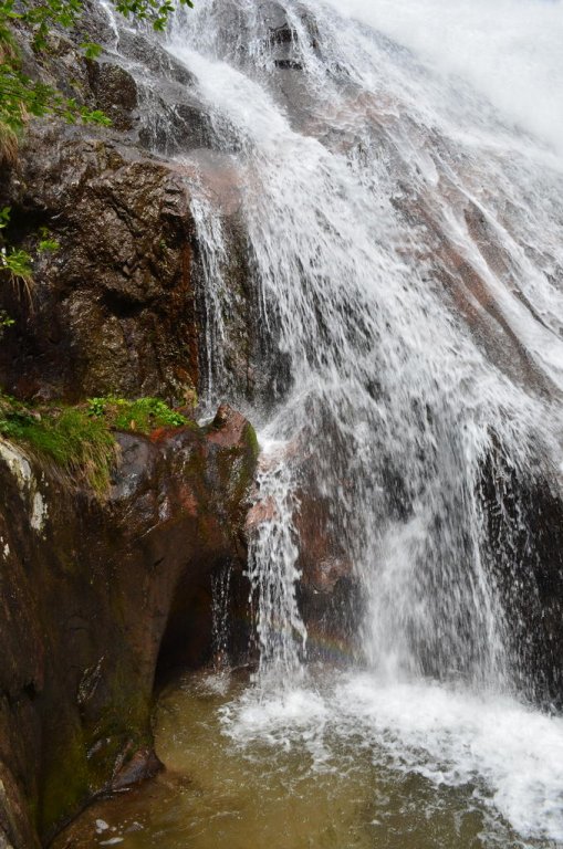 След известно време се стига и до най-големият водопад, мисля, че беше към 30тина метра, но не съм много сигурен(мъжете нали имат навика да удължават нещата...). Пътеката беше засипана от водни капки, имахме чувството, че вали ситен дъждец. Аз реших да хвана по-голяма част от водопада и се изкачих на склона точно срещу него(там няма пътека, но не е изобщо сложно да се покатериш).