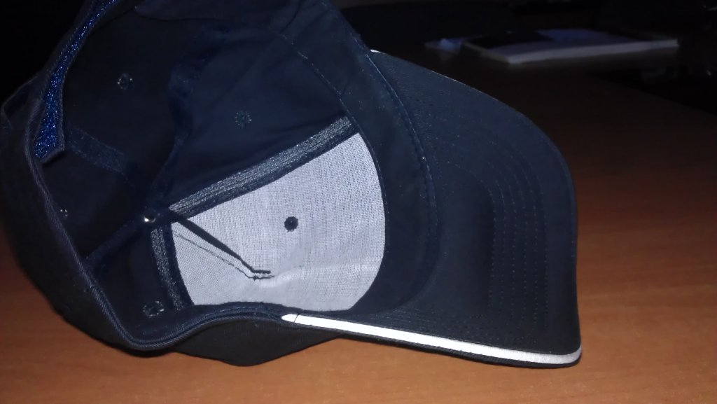Много твърда предница. След като счупихме 7 игли на бродировъчния автомат, мисля че ще трябва да се реже на лазер и да се лепи или да се бродира отстрани, където е значително по- меко. Метална катарамка, дебел памучен плат, много твърда вложка на козирката, абе хубава шапка.
