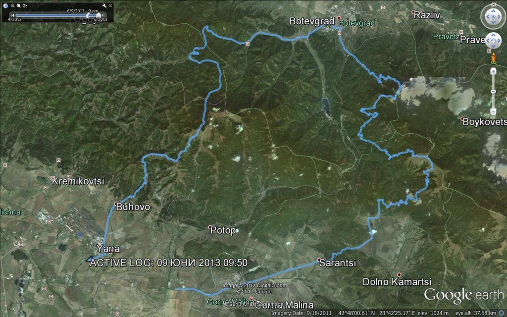 Влязохме в гората при паметника на Арабаконак и стъпихме на асфалт в Зелин (над Ботевград), след което поехме към Врачеш за да минем през Ябланица към Мургаш (по газопровода) и да слезем в Бухово. Втората част на маршрута (Врачеш - Ябланица - Мургаш - Бухово) е толкова популярна, че няма нужда да ѝ отделяме време.