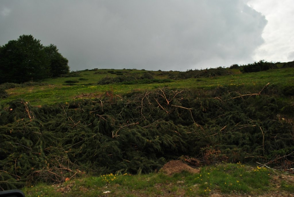 Излязохме над гората в подножието на връх Звездец, времето обаче ни подсказва, че няма да видим хубави гледки ако се качим до върха и затова пропускаме
