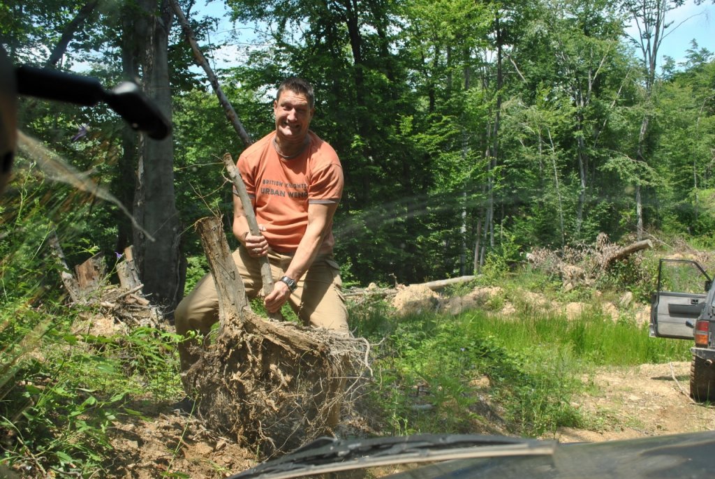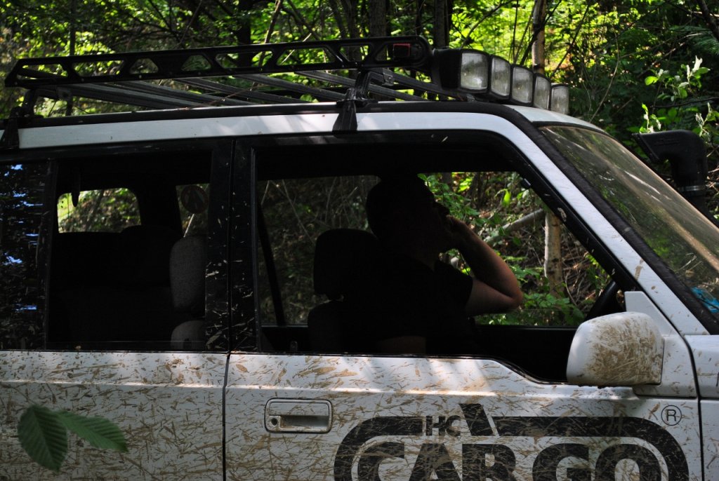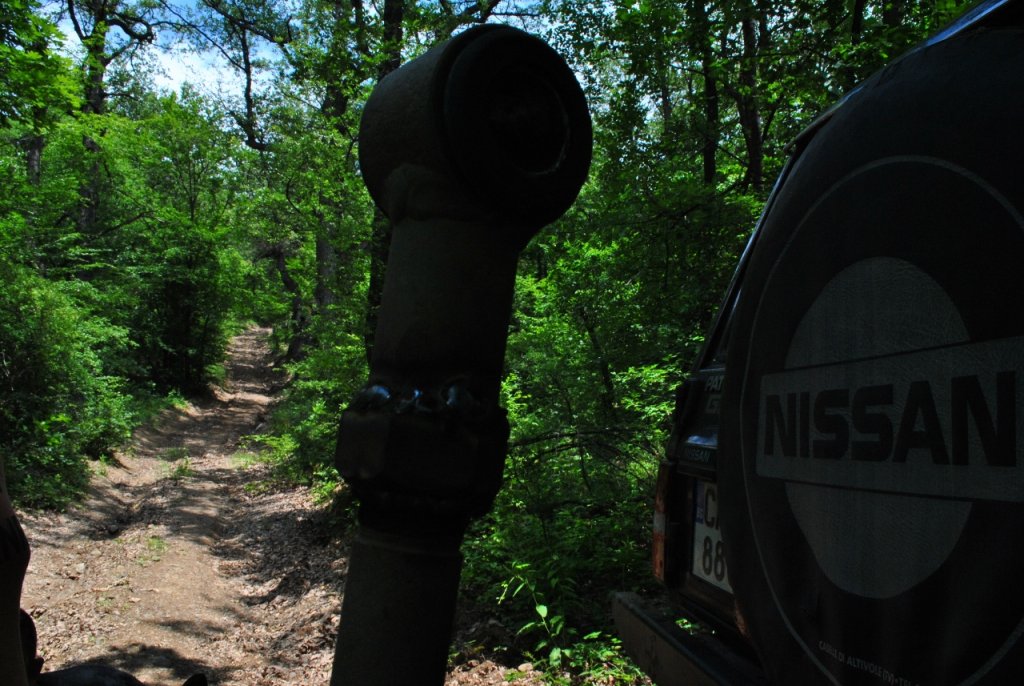 В началото на стръмното качване от долината на река Ечемишка към билото на Рудината, един хищен клон ми беше отнел миналата седмица една ценност и една безценност, та днес се върнах да си ги потърся... и си ги намерих. Фарът се оказа отпадък, явно джиповете след мен са минали отгоре му, но стърчащата емблема на предния ми капак (начечена още "Тотемът на Якудза") се оказа без сериозни повреди... Прибрах си я и доволен поех наобратно .
