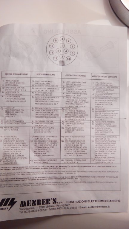 Долу, снимка на италински мъжки куплунг за ремарке с 13 клеми, виж клема 3