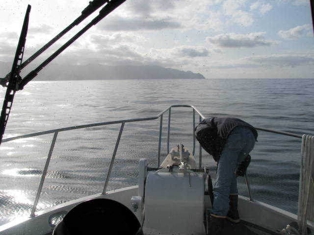 След 4 часа сме зад остров Каталина,бьрза проверка и малко тиксо,че тече.