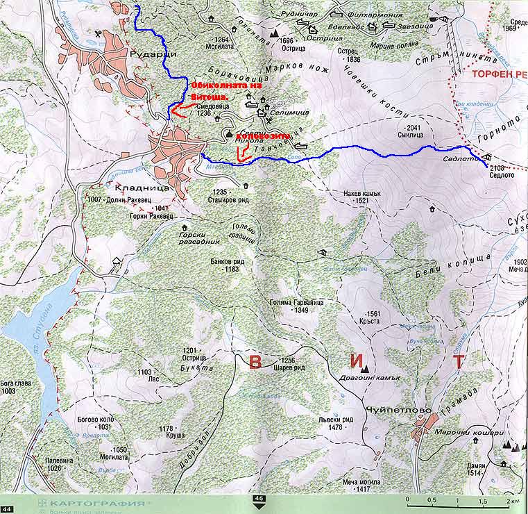 Ето и снимка на маршрута - от заслона съм го нарисувал... , малко след Черни Връх. Зуумнете за да я видите по-добре.