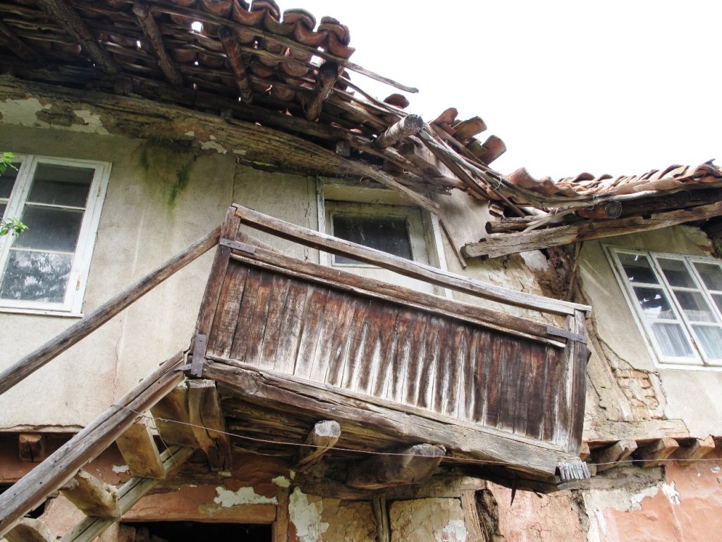 на 130 км - полупаднал тиклен покрив, 480м² двор, почти равнинен ландшафт, тежки процедури по установяване на собственост. Другата на 60км от София, полупланински терен, 680м² земя с дълго лице на улица. Къща със загубен автентичен вид
