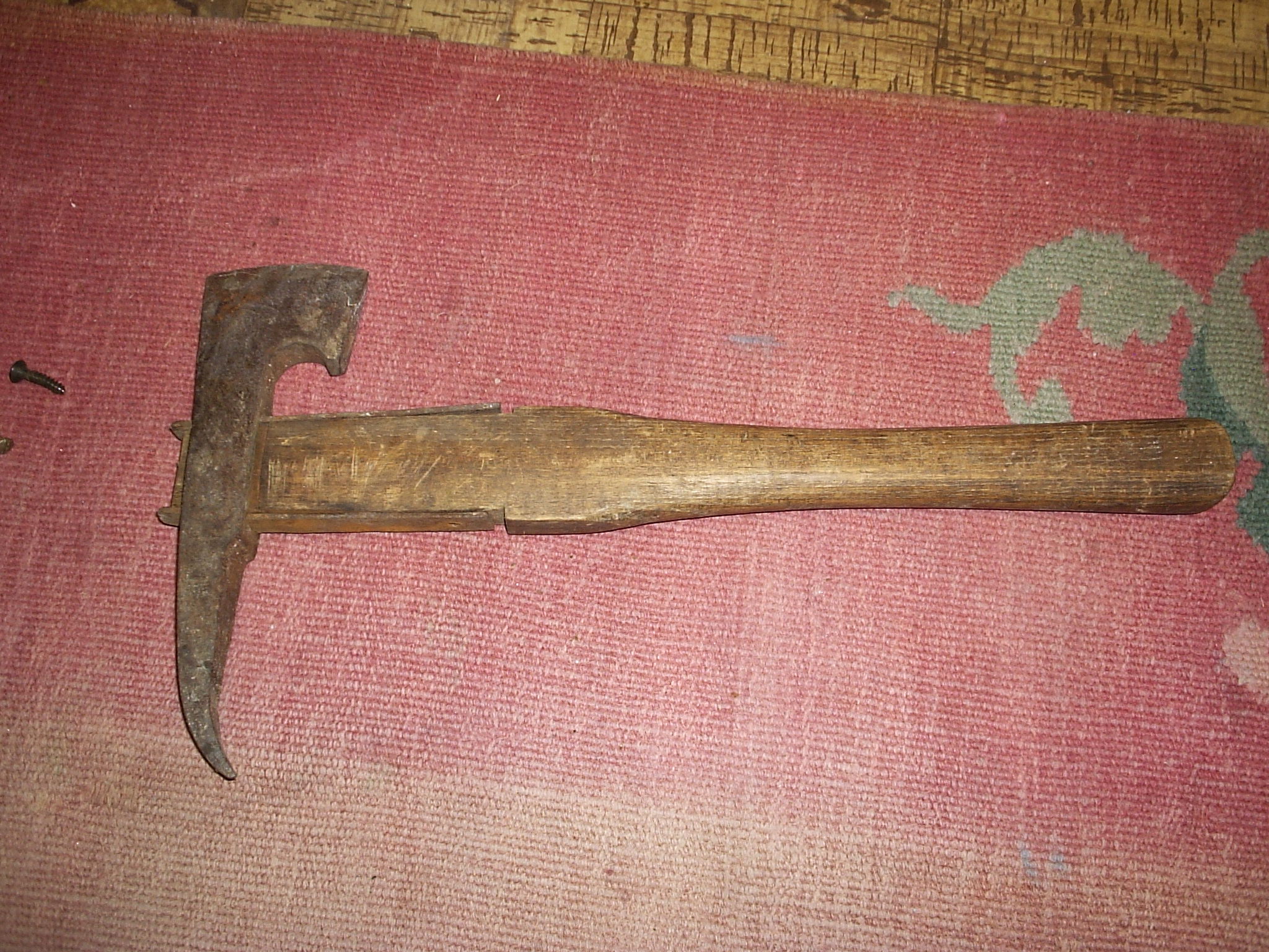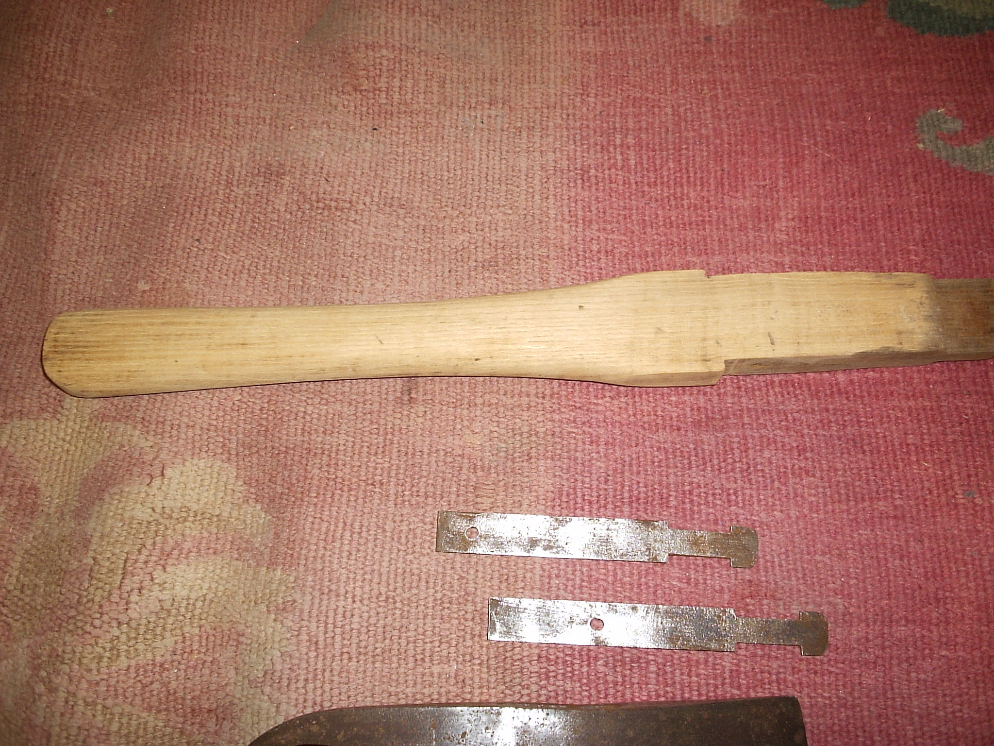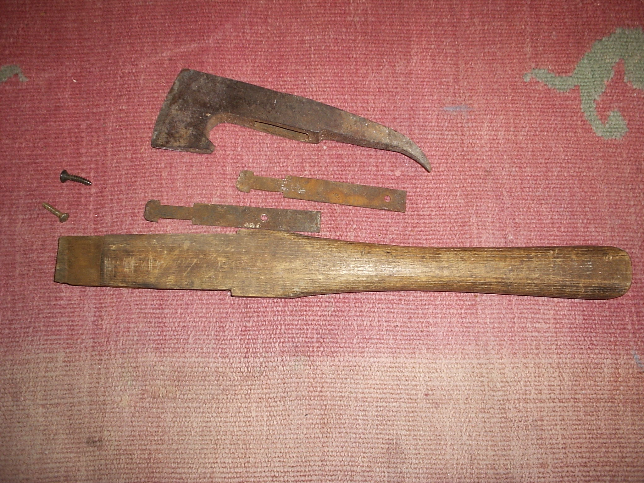 Острието се държи към дръжката посредством две планки.