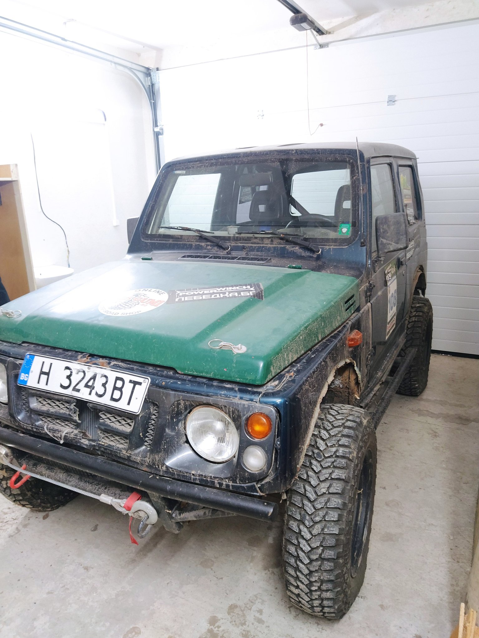 Сузуки Самурай SJ80 заводски на пружини, 1995г., 1,3 70к.с.. Технически много добро състояние, готов за старт. Обслужен със сменени всички течности от до преди по-малко от 2000км., като маслото на двигателя е добре да се смени тъй като е вече на 2 години. Купил съм му нови предни накладки, които чакат ред от месеци.