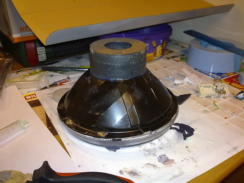Пръв поглед - вижда се механизъмчето за промяна на "блендата" за къси и дълги светлини. Малко електромагнитче, и проста система от лостчета и ламаринки, които в крайна сметка се оказа че вършат добре това, за което са направени. Ето и още няколко снимки:
