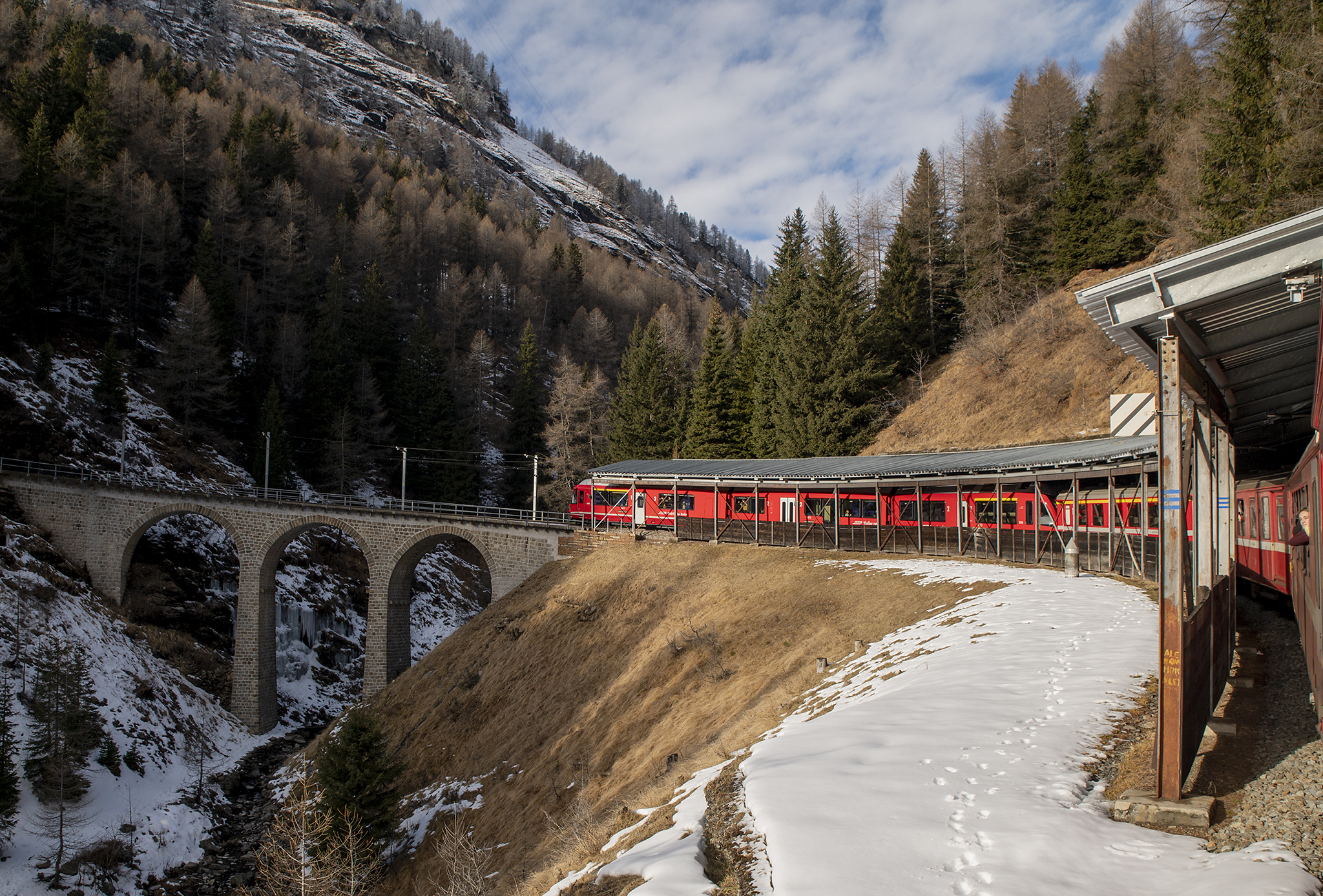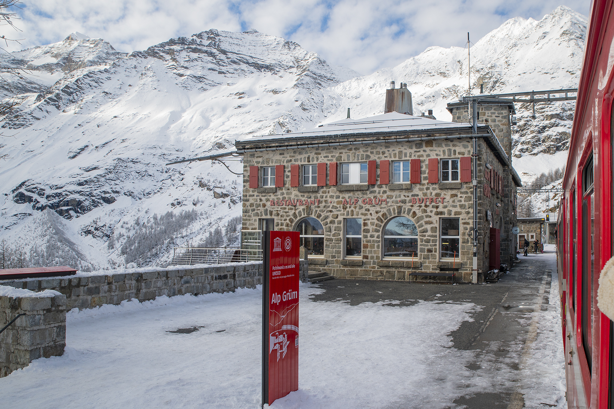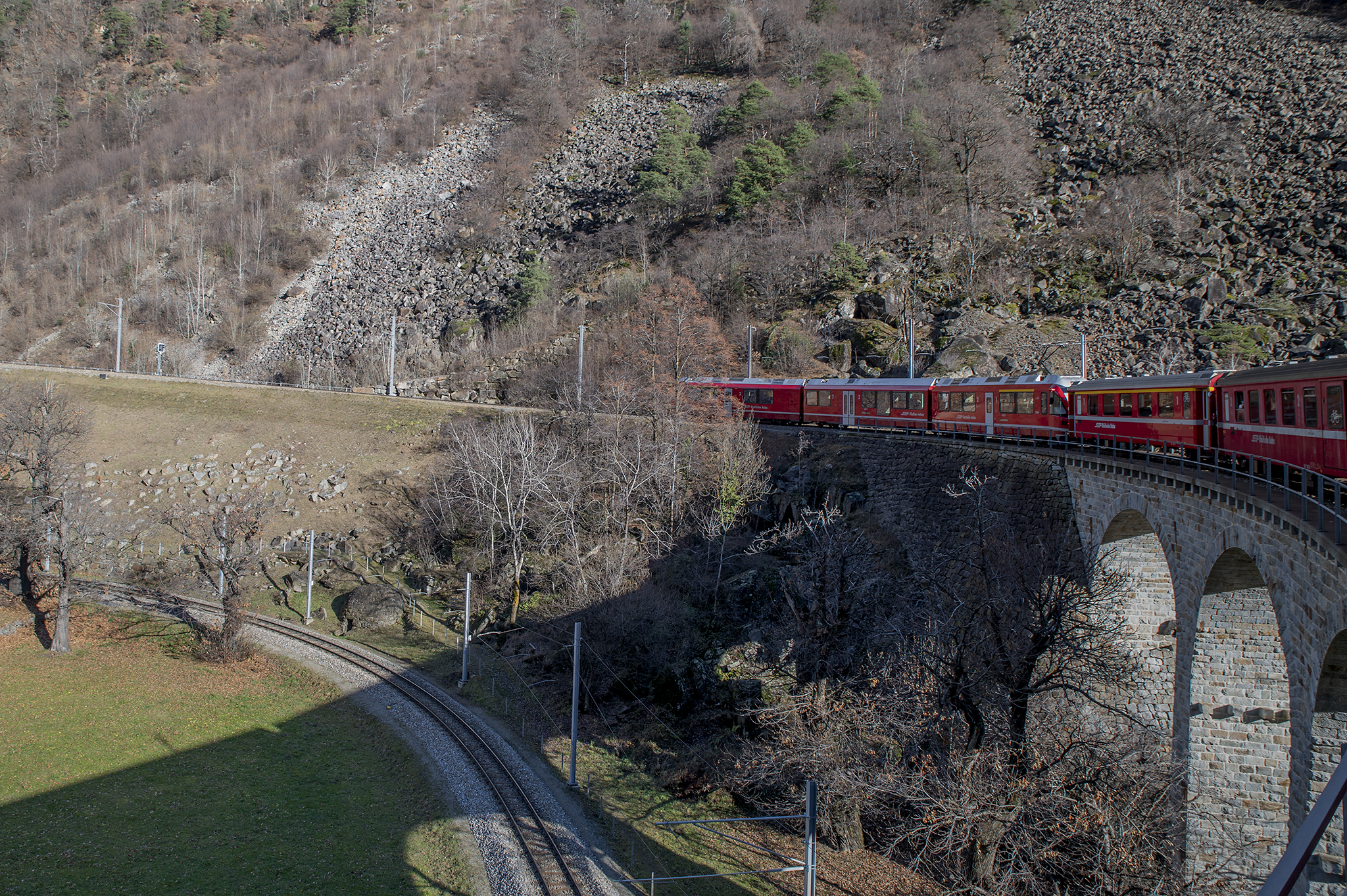 Една разходка с влак, която много ми хареса и я препоръчвам на всеки. Влака се хваща от Тирано (Tirano) до Сен Мориц (St. Moritz) и е известен под името Bernina Express, който е с панорамни не свалящи се прозорци, и задължително със запазени седящи места. За него билетите са малко скъпи и трябва да са взети по от рано. Има два - три курса на ден, в конкретен час. Алтернативата обаче е регионалния влак, който се движи по същия маршрут и е на всеки час. Не се запазват места, прозорците се свалят, а парното във влака е доста силно.