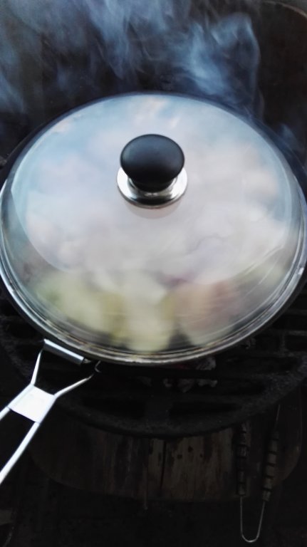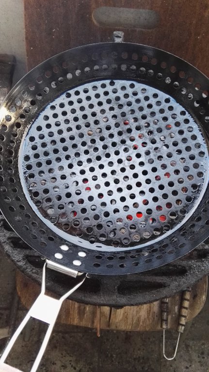 Ако някой е имал някакви съвети- вече е късно. Турих дупчения тигань на въглищата