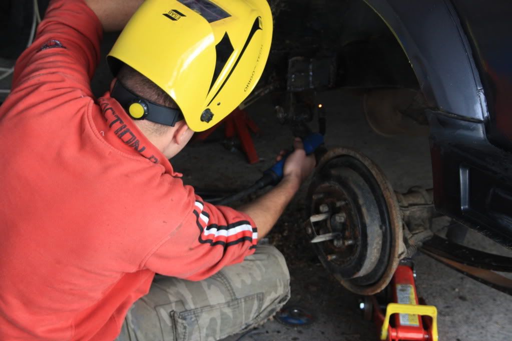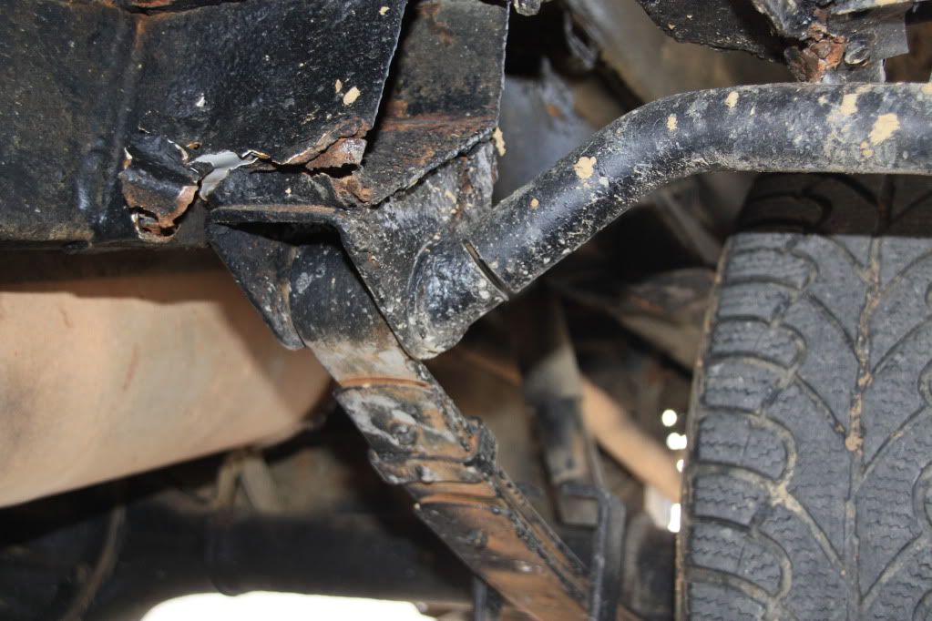 Това предполагам е една от причините ухото да стане на това дередже(след като препятствията са Опирали в нея), тая тръба е била за предпазване на праговете и степенка - докато не я срязах . Умникът дето я е сложил я е заварил върху гайката на болта дето държи ресора .