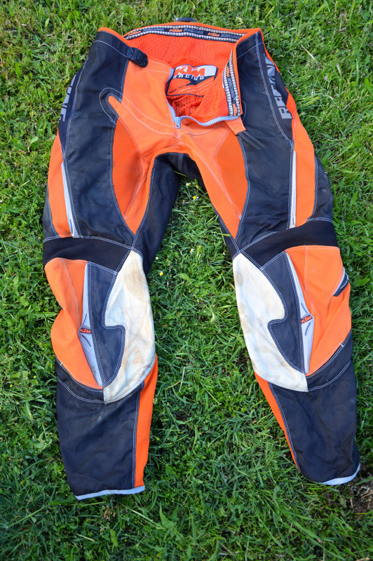 Като се видим ще ти донеса моите кросови гащи. Много са хубави. От КТМ са. Но аз тогава преди 15 години бях по-слабичък, та сега не ми стават. Те са специално направени отдолу за да могат да се мушат в ботушите, ама нямат протектори. Но пък са направени така, че да се проветряват. Ако ти станат ще ти ги подаря.