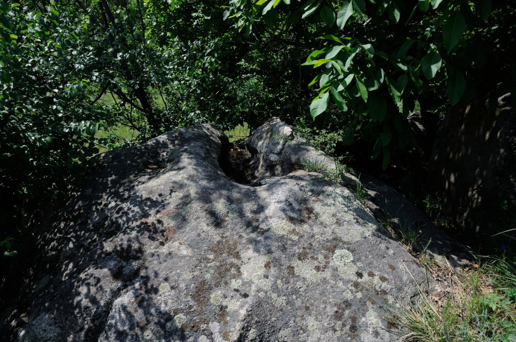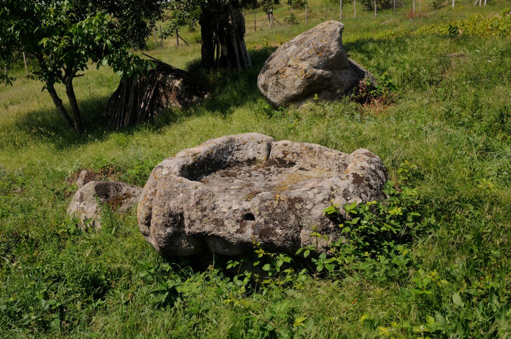В непосредствена близост намираме скала с издълбани улеи по нея.